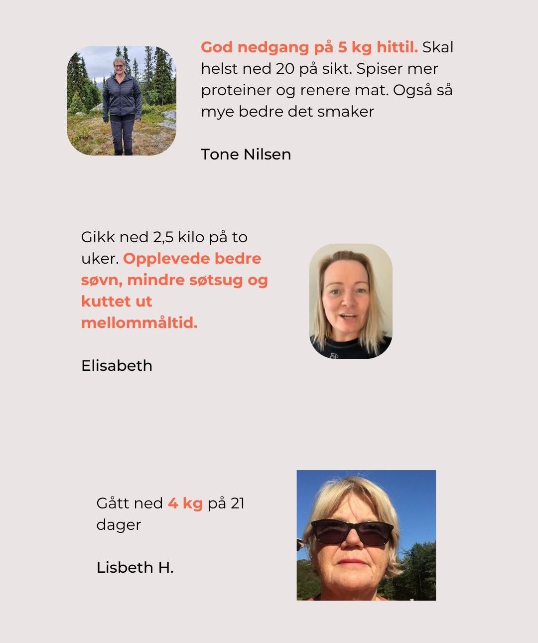 Her er noen historier fra tidligere klienter – folk som var der du er nå. Med en helhetlig tilnærming, personlig støtte og små grep, har de oppnådd resultater som varer.